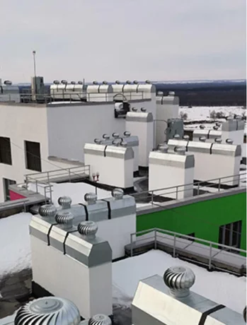 Тепловую энергию вырабатывают собственные энергоэффективные крышные котельные. При этом отсутствуют потери тепла на теплотрассах, свойственные централизованному городскому отоплению. Все это приводит к экономии до 30% энергоресурсов.